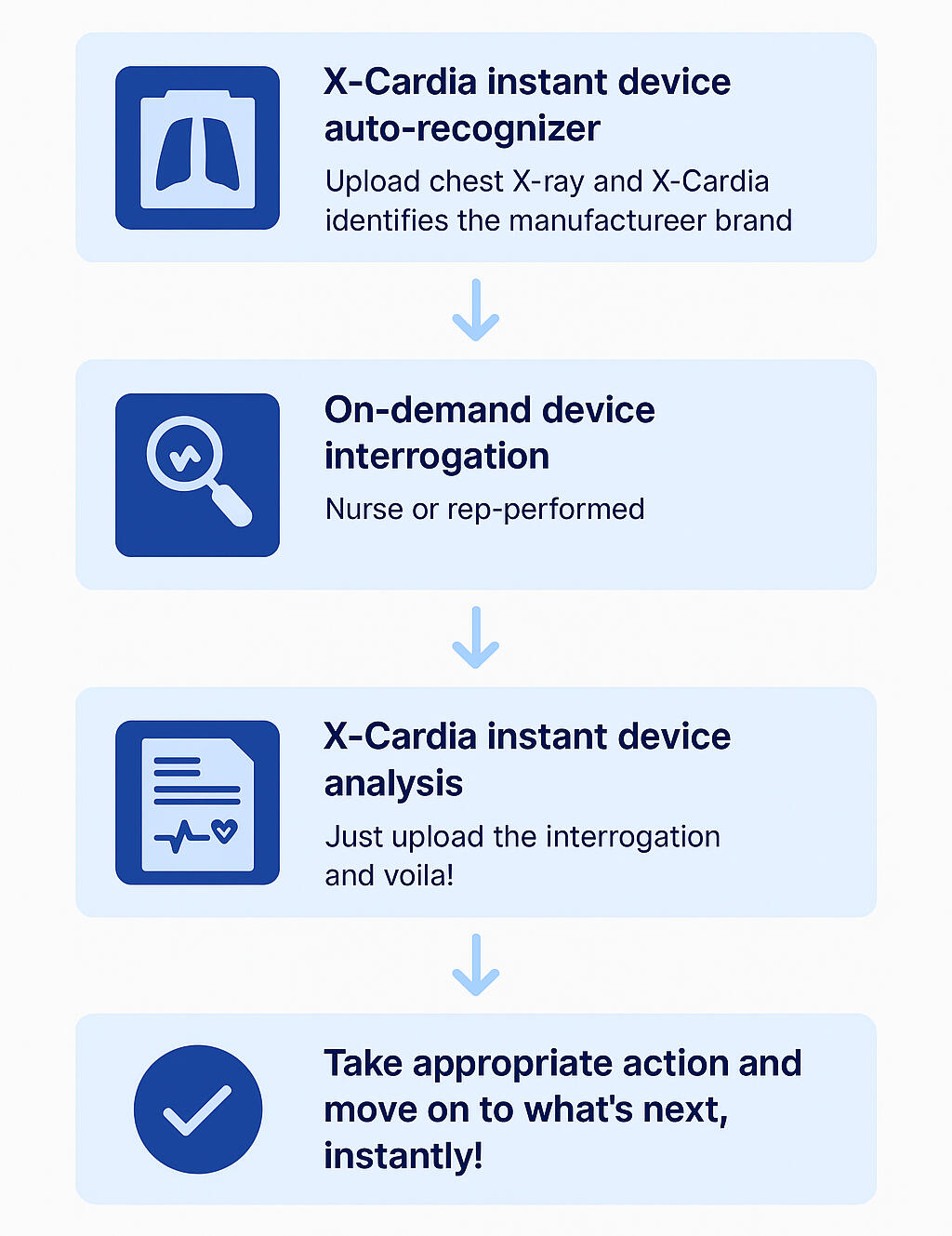 Cardiac device specialists and electrophysiologists are not always readily accessible and this can delay care decisions when a patient is in front of you.X/Cardia uses multi-modal AI models to read the CIED report, and summarizes the salient findings so you can make decisions about patient care, now.