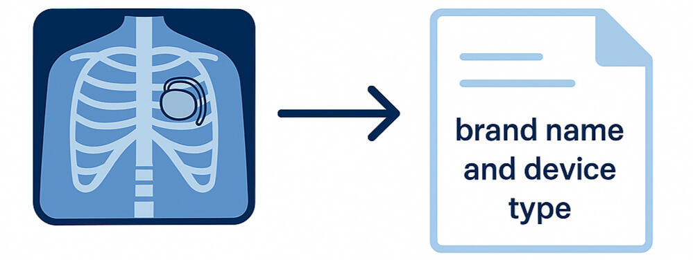 Just upload a chest x-ray that includes the cardiac device and X/Cardia will figure it out.